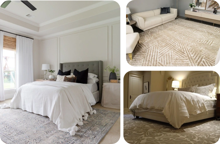 There are Persian, Turkish, and Afghan handmade carpets. Modern shaggy, wool, and wall-to-wall types are also prevalent. The varieties include traditional and modern preferences.