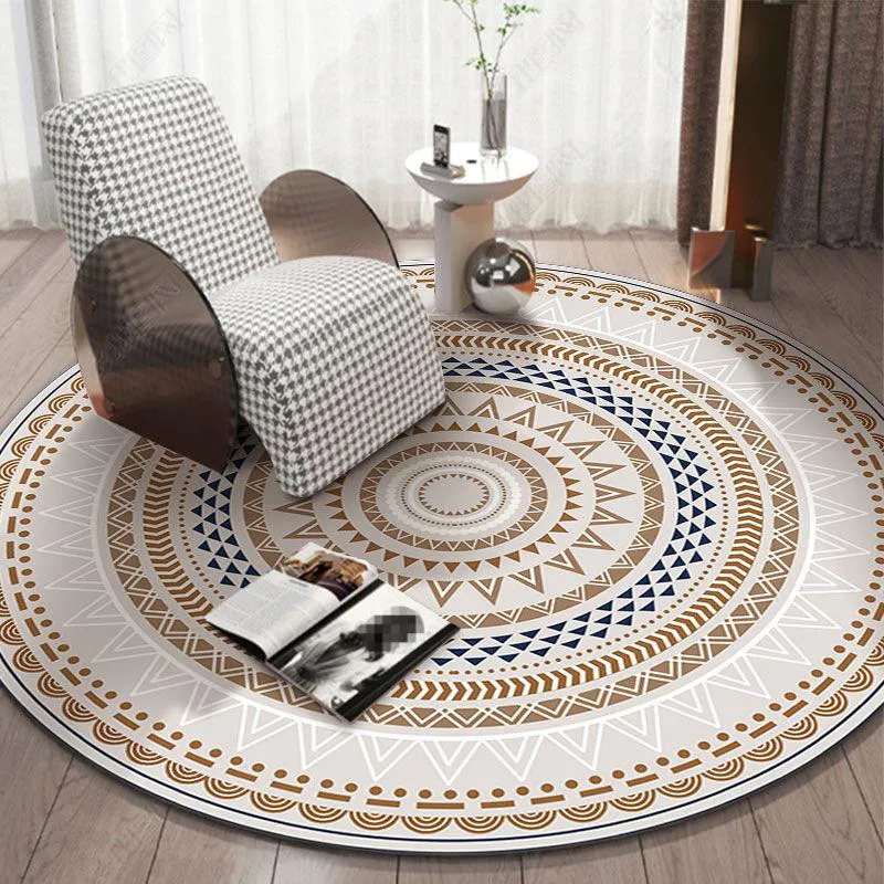 We believe good yarns, tight knotting, and neat edging; that’s what makes a carpet hold shape and color longer. Our finishing includes anti-fray hems, secure binding, and a backing that stops slipping and stretching. This reduces wear in high-traffic spots like living rooms and dining areas where circular carpets often sit.